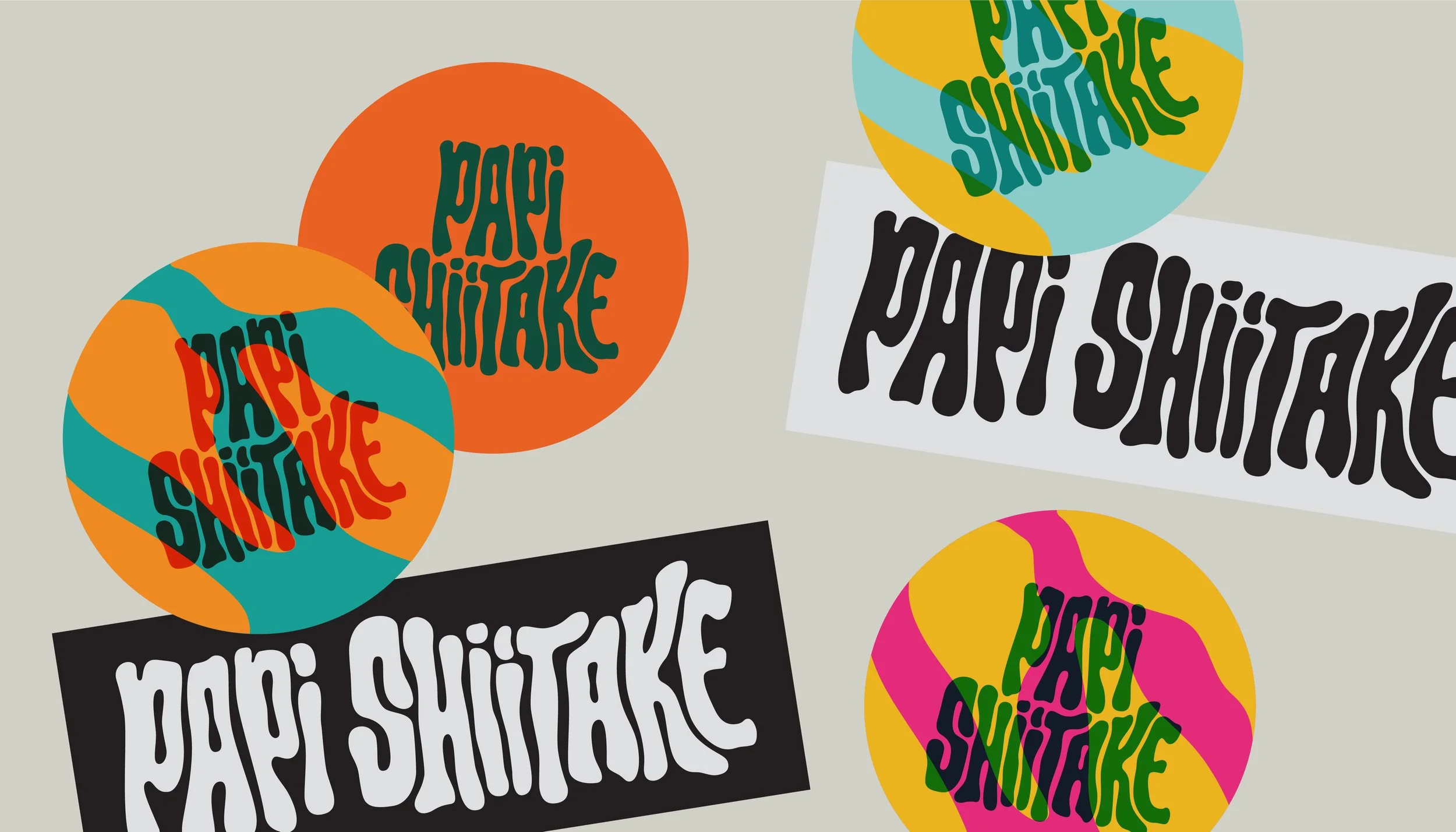 Papi Shiitake is a band based out of New York. Their dream-like sounds and lyrics were the inspiration behind this custom hand-lettered logo and punchy vibrant color palette.