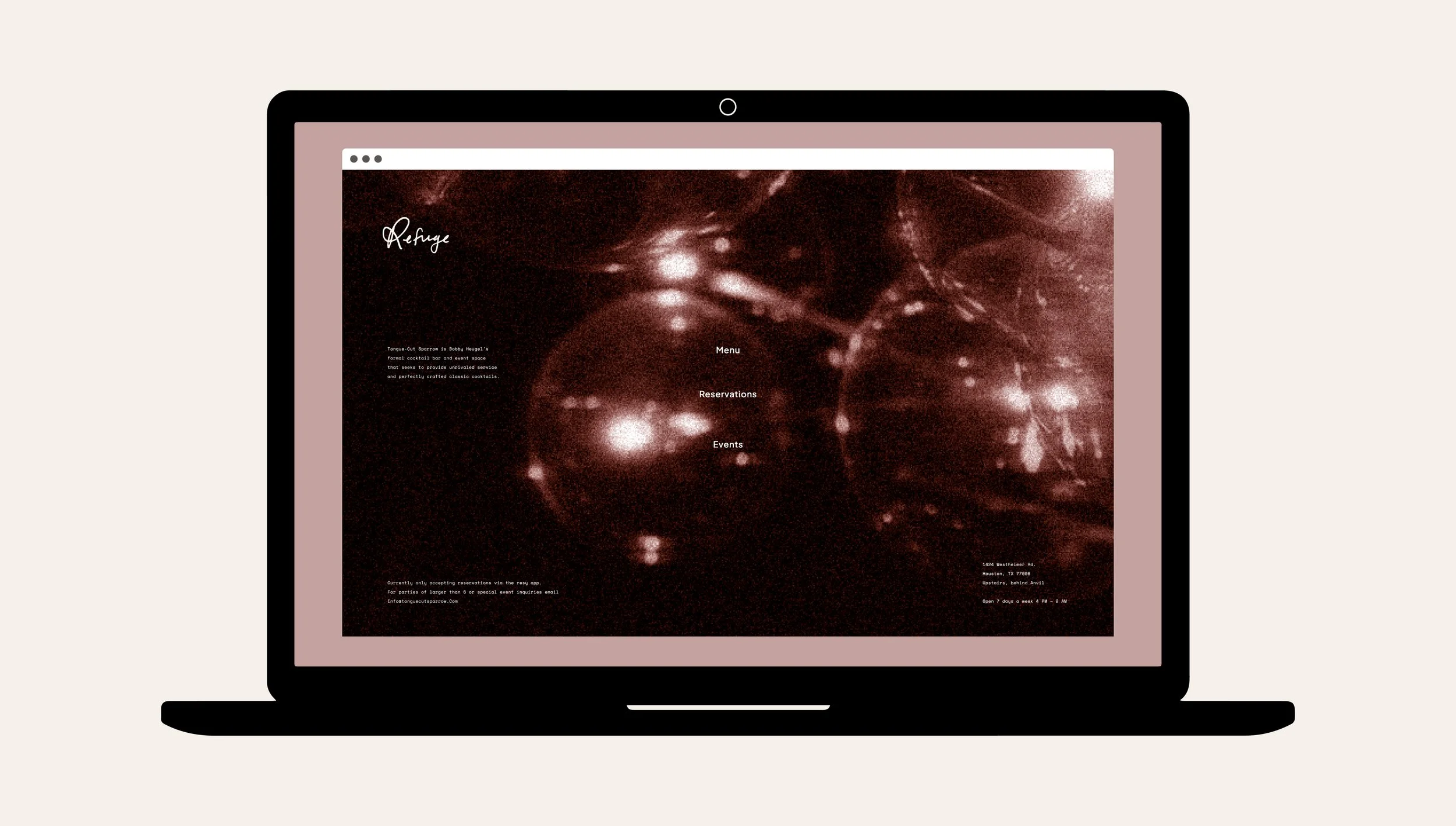 Refuge is a bar in the Houston area. Wanting an “anti-brand” to move away from the over–branded and “too cool” bars popping up all over the area. The bar itself is in a small dark space and the owners wanted to keep it that way. Focusing on the quality of drinks and service first and the brand and its marketability second.