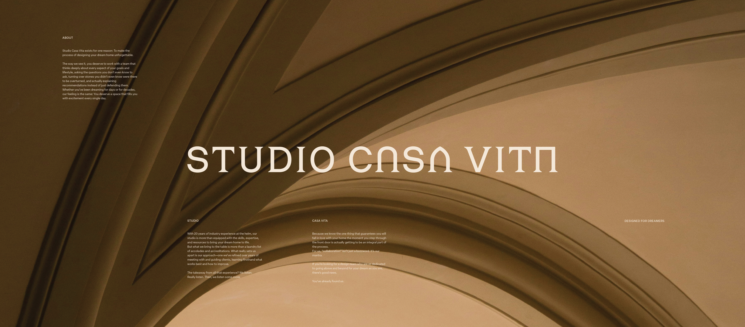 Owner and Principal, Gina Elkins, approached us to inject the same life, energy, and passion into Studio Casa Vita that she and her team bring to helping clients create their dream homes. We rebranded the studio with fresh visual and verbal elements, giving the brand a professional yet welcoming feel.